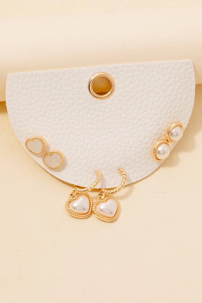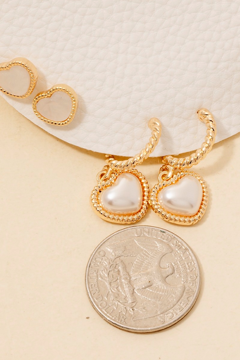 This pair of earrings introduces a unique pearl studs and heart charms set style. Experience a subtle blend of modernity and classic charm as this pair of earrings effortlessly adorns your ensemble.