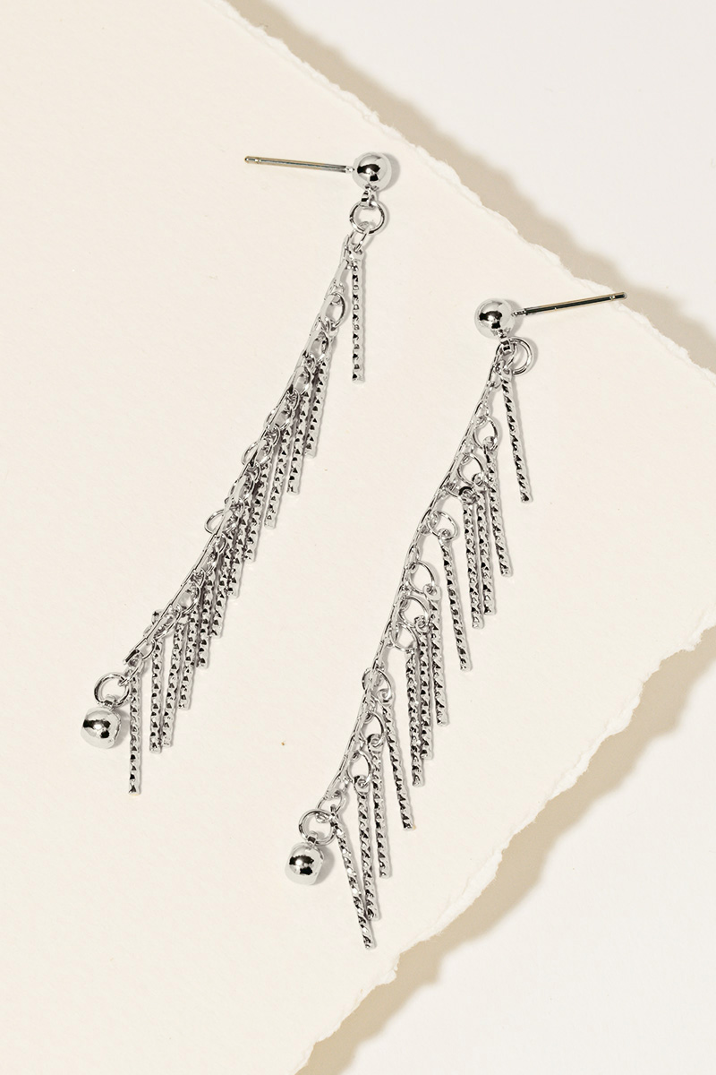 • This season's must-have accessory, this pair of dangle earrings comes with a special textured metallic bar charms design. Take your style to the next level by incorporating this versatile accessory, a key element in achieving a polished look. Available in GD and SV. This item is sold in packs of 1.