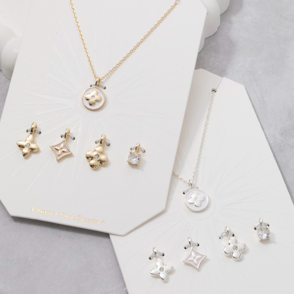 This necklace is made with 75% Brass and 25% Cubic Zirconia.