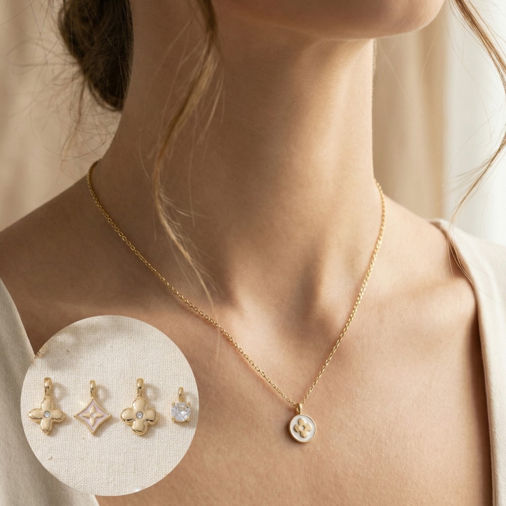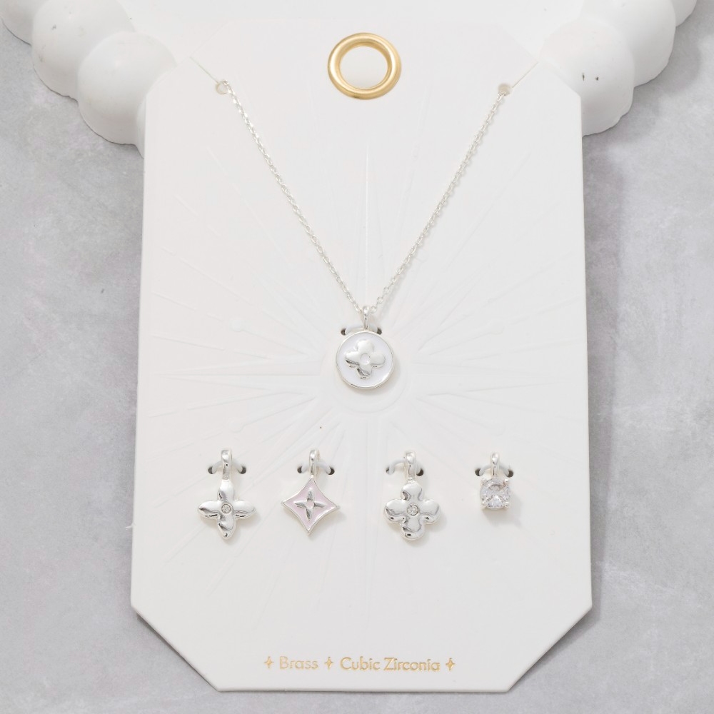 A stunning addition to any jewelry collection, this necklace displays a unique five piece assorted clover charms pendant design. Redefine your wardrobe with this versatile necklace, a timeless addition that brings an air of sophistication to any look. Available in G, S. This item is sold in packs of 1.