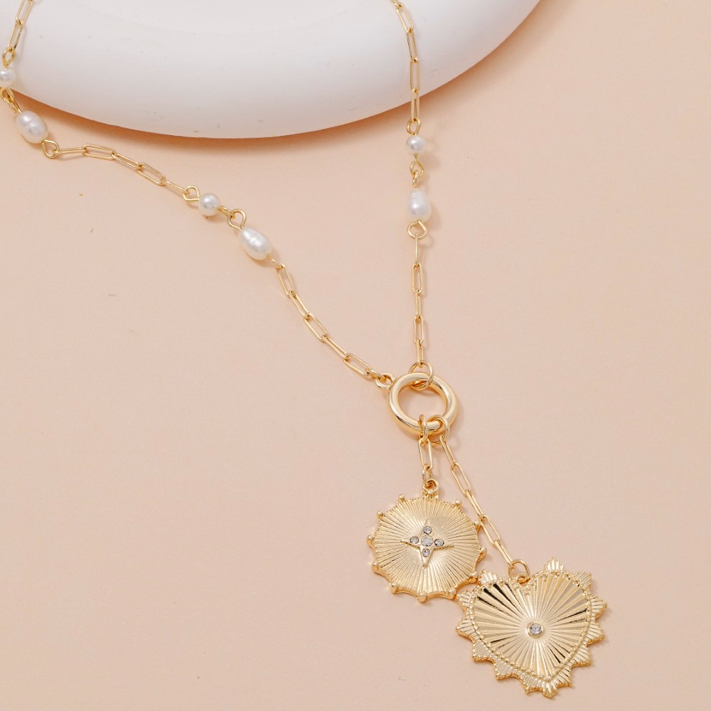 Intricate Heart And Coin Pendants Chain Necklace
