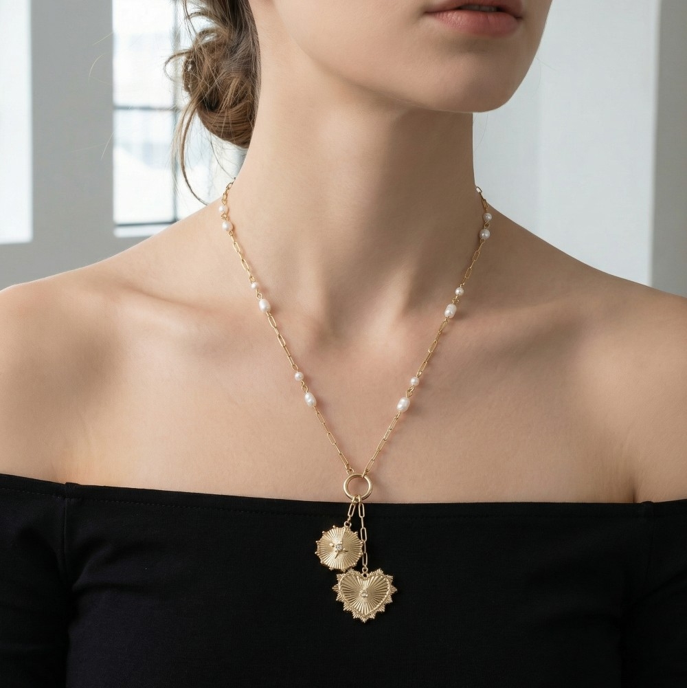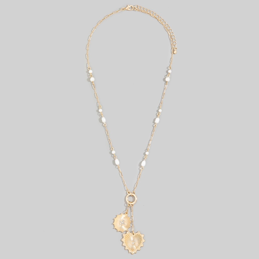 Mixed Heart And Pearl Charms Chain Necklace