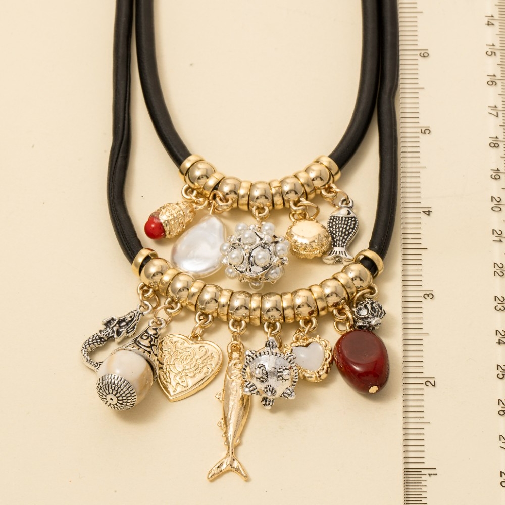 • Upgrade your necklace game, this necklace boasts a magnificent heart pearl and sea life charms layered cord design. Perfect for adding a touch of glamour and sophistication to any outfit, this necklace is a must-have. Available in GBK. This item is sold in packs of 1.