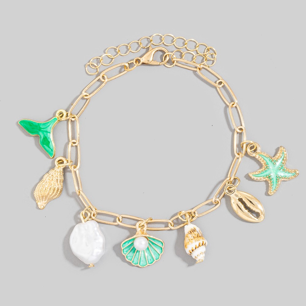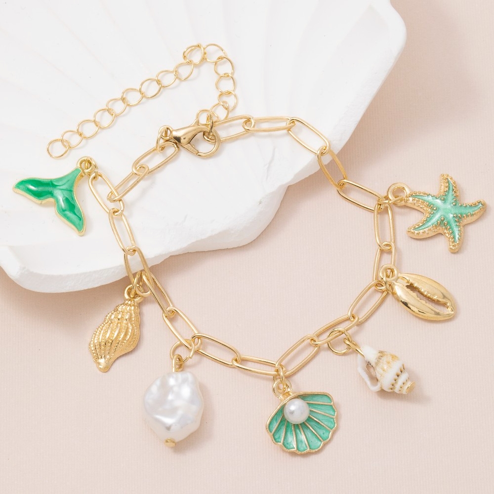 • Chic, sophisticated, and always in style, this chain bracelet adds a distinctive mixed sea life charms design. This item is a great way to add some texture and dimension to any outfit. Available in GD. This item is sold in packs of 1.