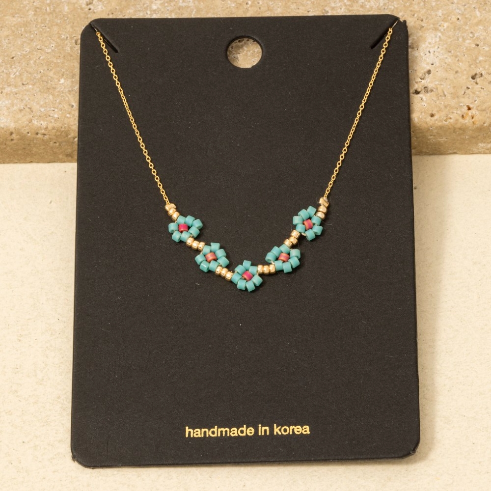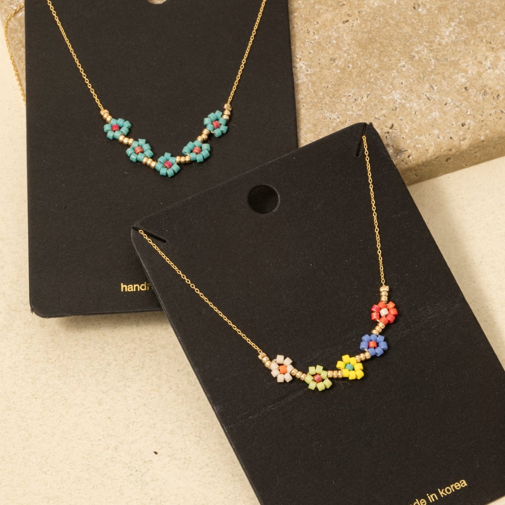 • Stay on-trend and stand out from the crowd, this necklace incorporates a remarkable dainty seed beaded flower charms design. This item is perfect for anyone who loves to accessorize and add some personality to their outfits. Available in MU, TQ. This item is sold in packs of 1.