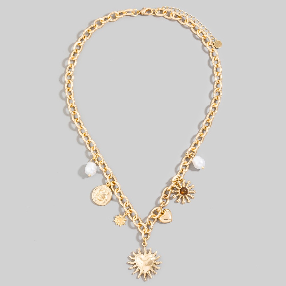 Intricate Heart And Coin Pendants Chain Necklace