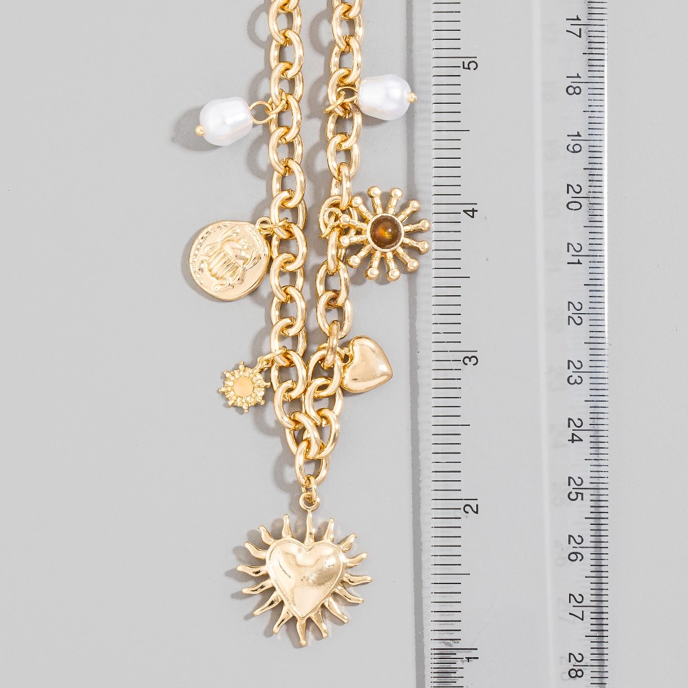 Mixed Sun And Pearl Charms Chain Necklace