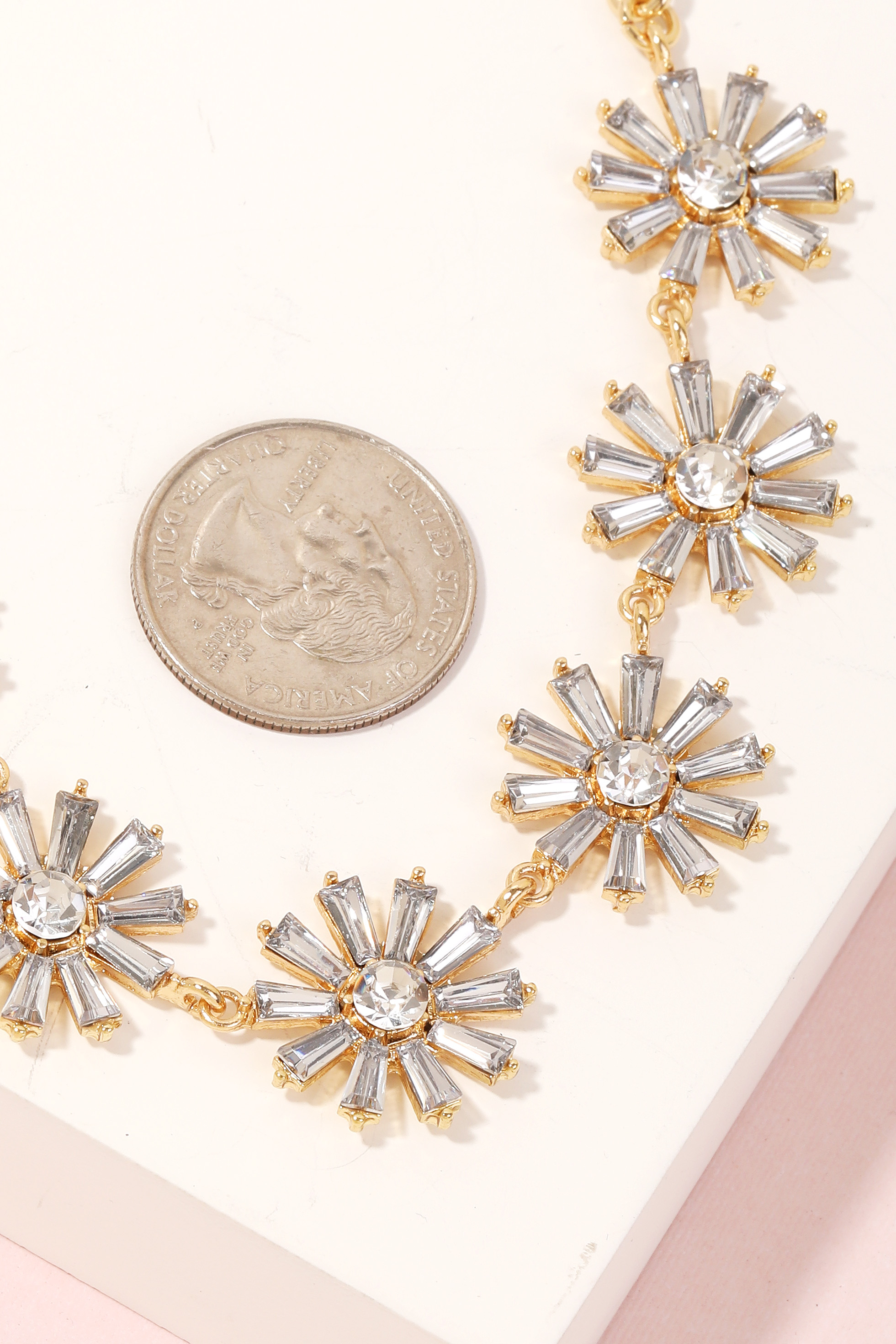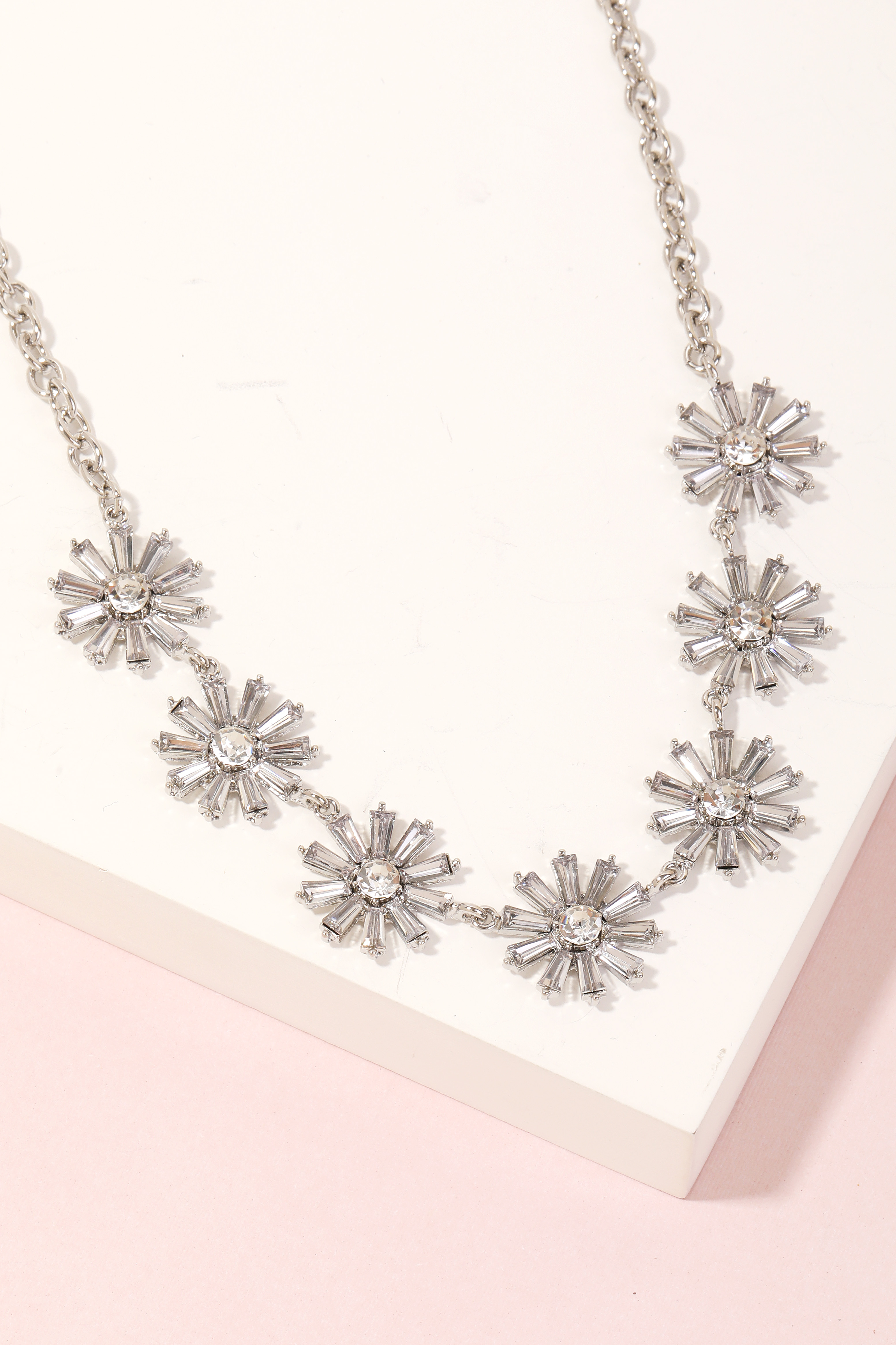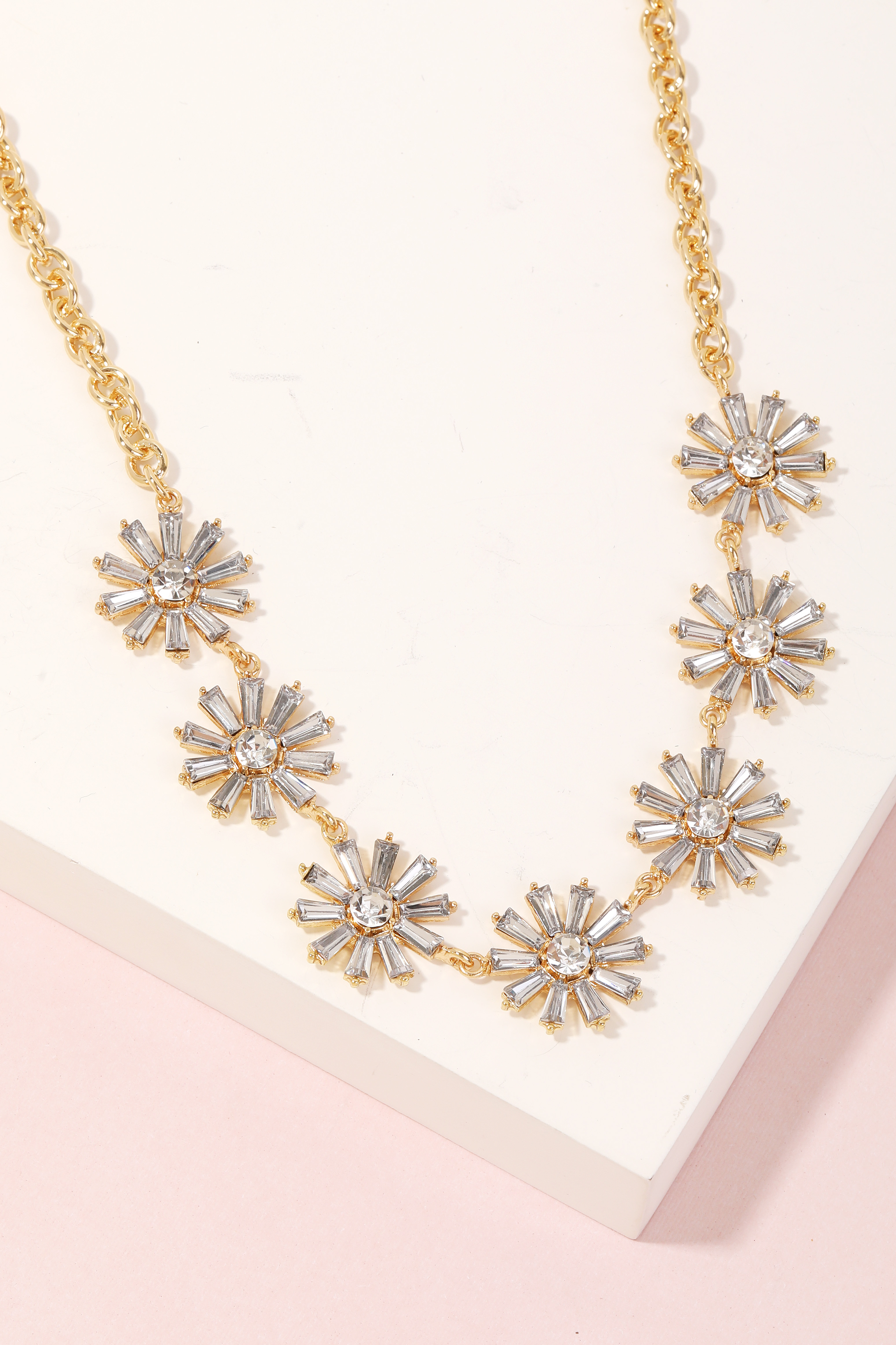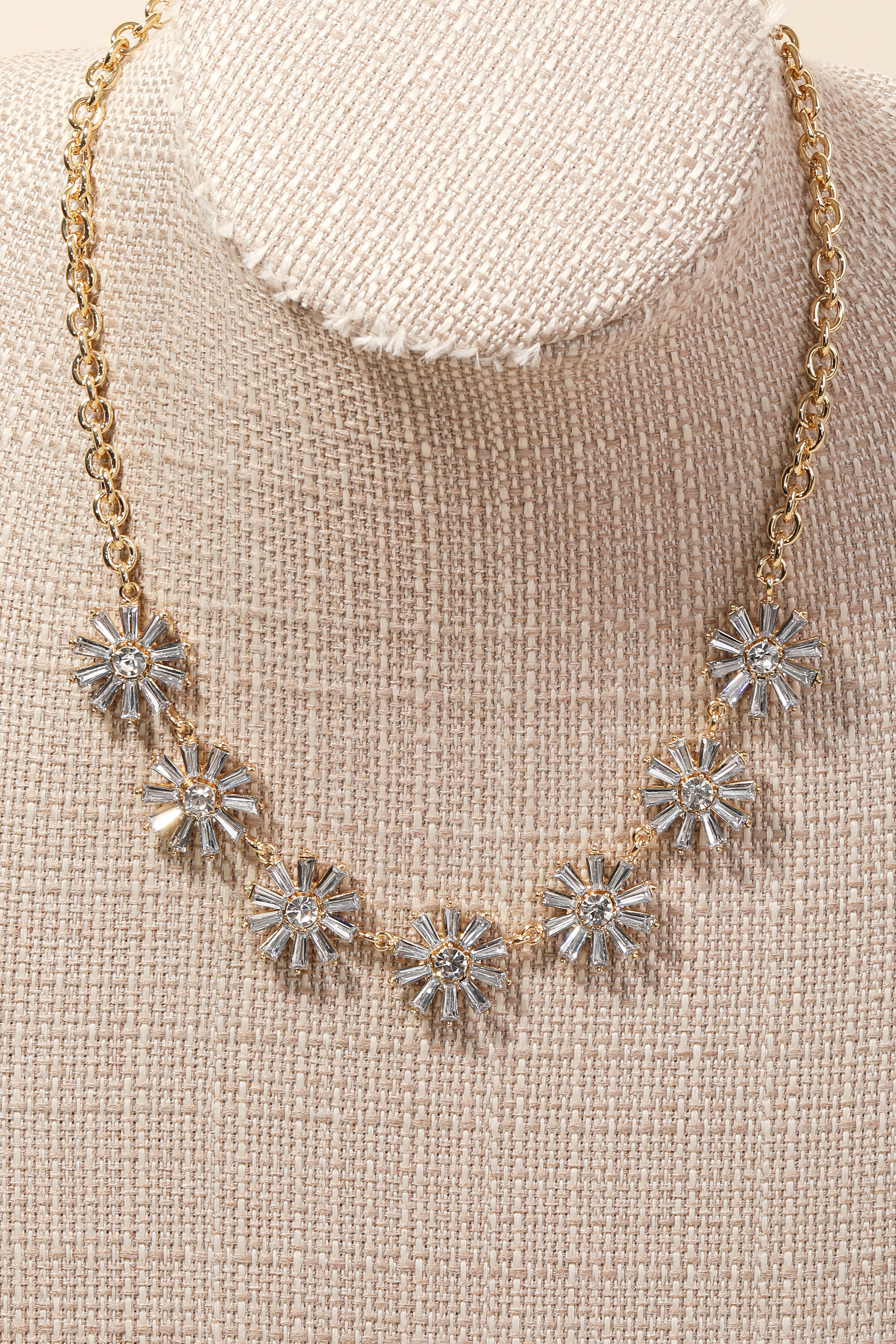 • The perfect way to add some sparkle to your outfit, this chain necklace features a distinct rhinestone flower charms chain necklace design. A must-have accessory for anyone who loves to add some flair to their outfits. Available in CLG, CLS and MUG. This item is sold in packs of 1.