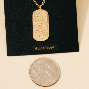Gold Dipped Evil Eye Dog Tag Pendant Necklace