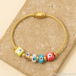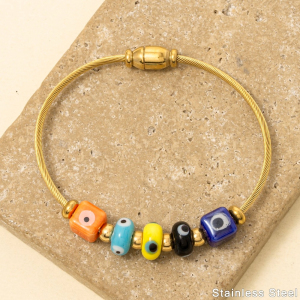 Stainless Steel Colorful Evil Eye Blocks Bracelet