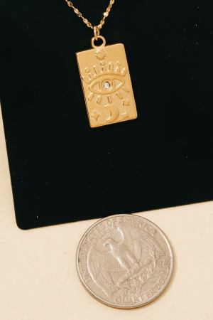Stainless Steel Evil Eye And Moon Rectangle Pendant Necklace