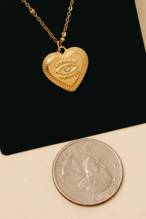 Stainless Steel Single Stud Evil Eye Heart Pendant Necklace