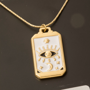 Stainless Steel Enamel Evil Eye Moon Rectangle Pendant Necklace
