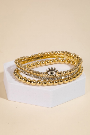 Evil Eye Beaded Elastic Bracelet Set