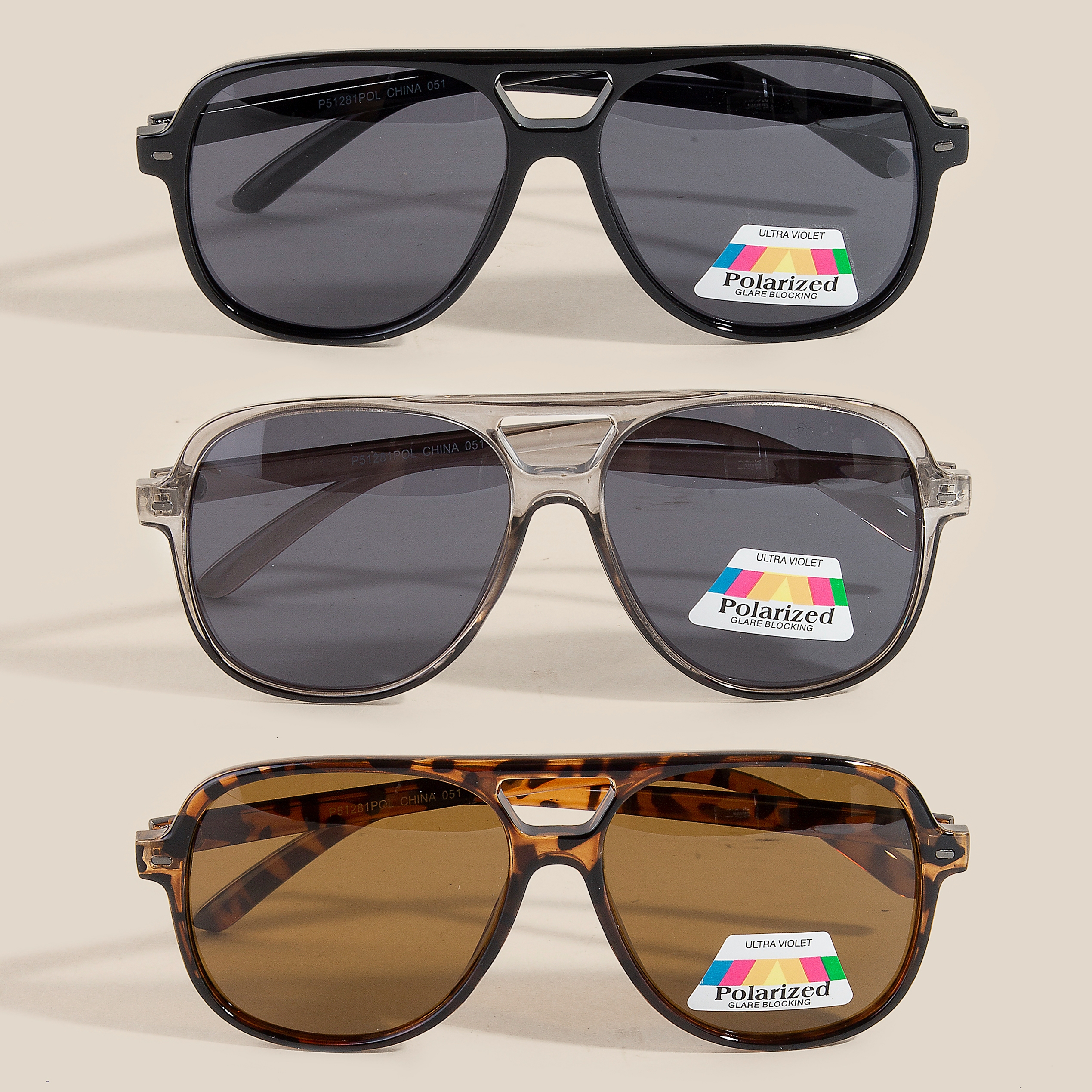 • This season's must-have set of sunglasses, this set of sunglasses contains a special acetate aviator frame sunglasses set design. Add a dash of sophistication to your look with this versatile set of sunglasses, a must-have for fashion enthusiasts. Available in ASSORTED. This item is sold in packs of 12.