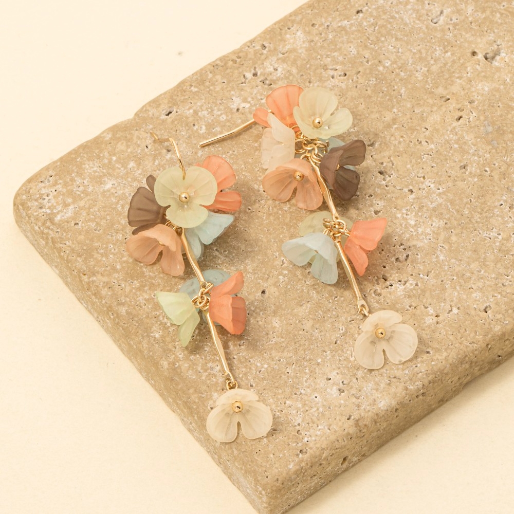 • This pair of dangle earrings is made with 90% Acrylic 10% Brass.