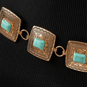 Western Turquoise Studded Rectangle Concho Chain Belt