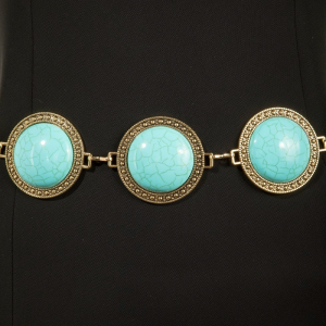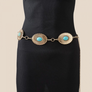 Oval Turquoise Stone Western Style Concho Chain Belt