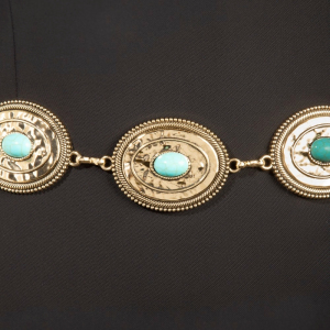 Western Turquoise Stone Oval Concho Disc Chain Belt
