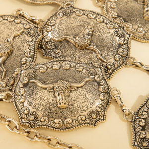 Western Mini Turquoise Stud Oval Concho Chain Belt