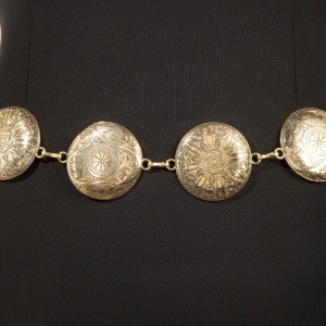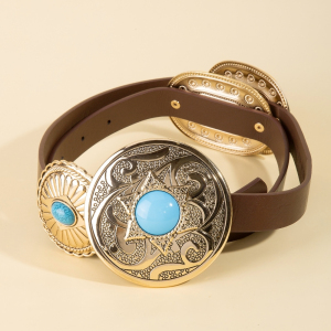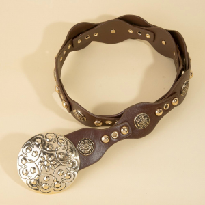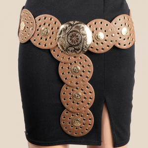 Ornate Concho Disc Buckle Vegan Leather Belt