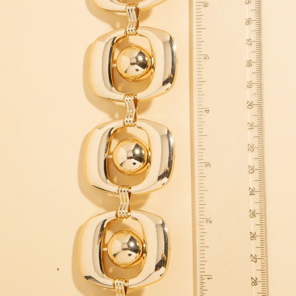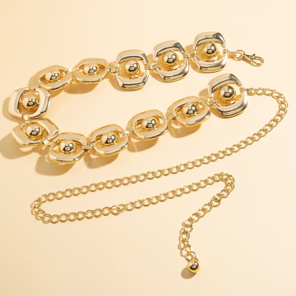• The perfect way to add some sparkle to your outfit, this belt shows off a distinctive unique ball disc chain link design. Transform your outfit into a fashion masterpiece with this versatile belt, an essential for the style-conscious individual. Available in G, S. This item is sold in packs of 1.
