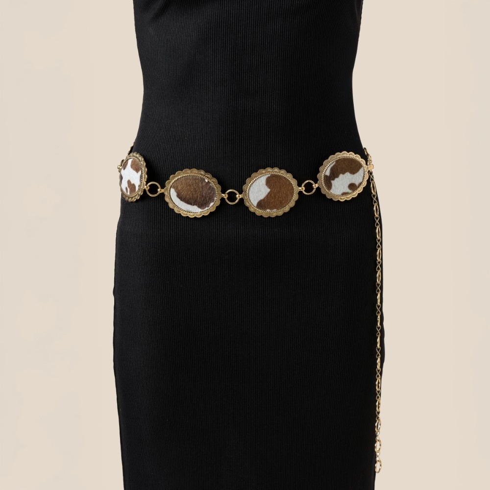 • A true work of art, this chain belt shows off a distinctive western cowhide disc design. This item is perfect for adding some color and vibrancy to any outfit. This item is sold in packs of 1.