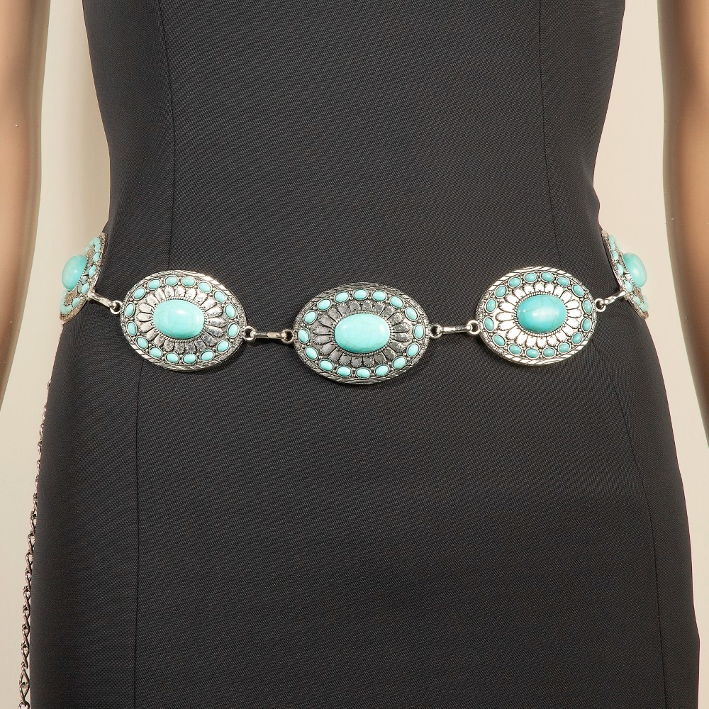 Turquoise Stone Western Concho Chain Belt