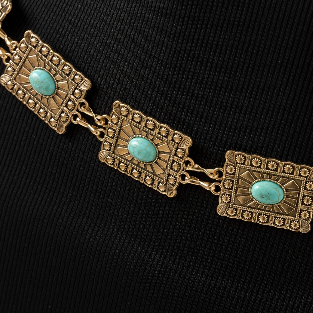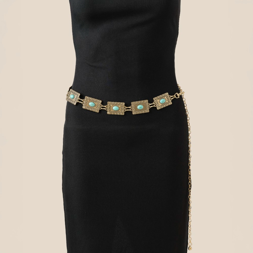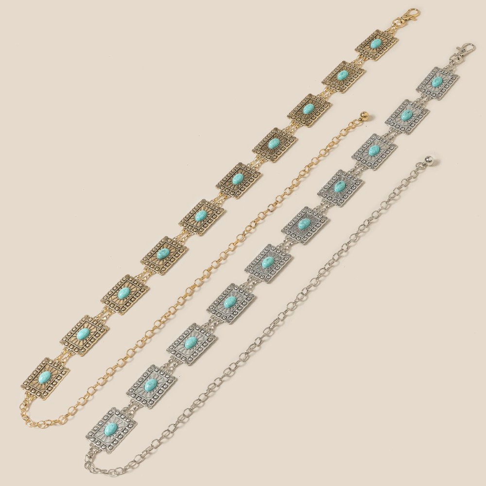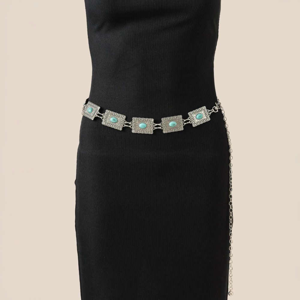 The perfect way to complete any outfit, this chain belt possesses a fine western style concho rectangle design. Unleash the power of style with this versatile chain belt, perfect for enhancing the charm of your wardrobe. Available in G, S. This item is sold in packs of 1.