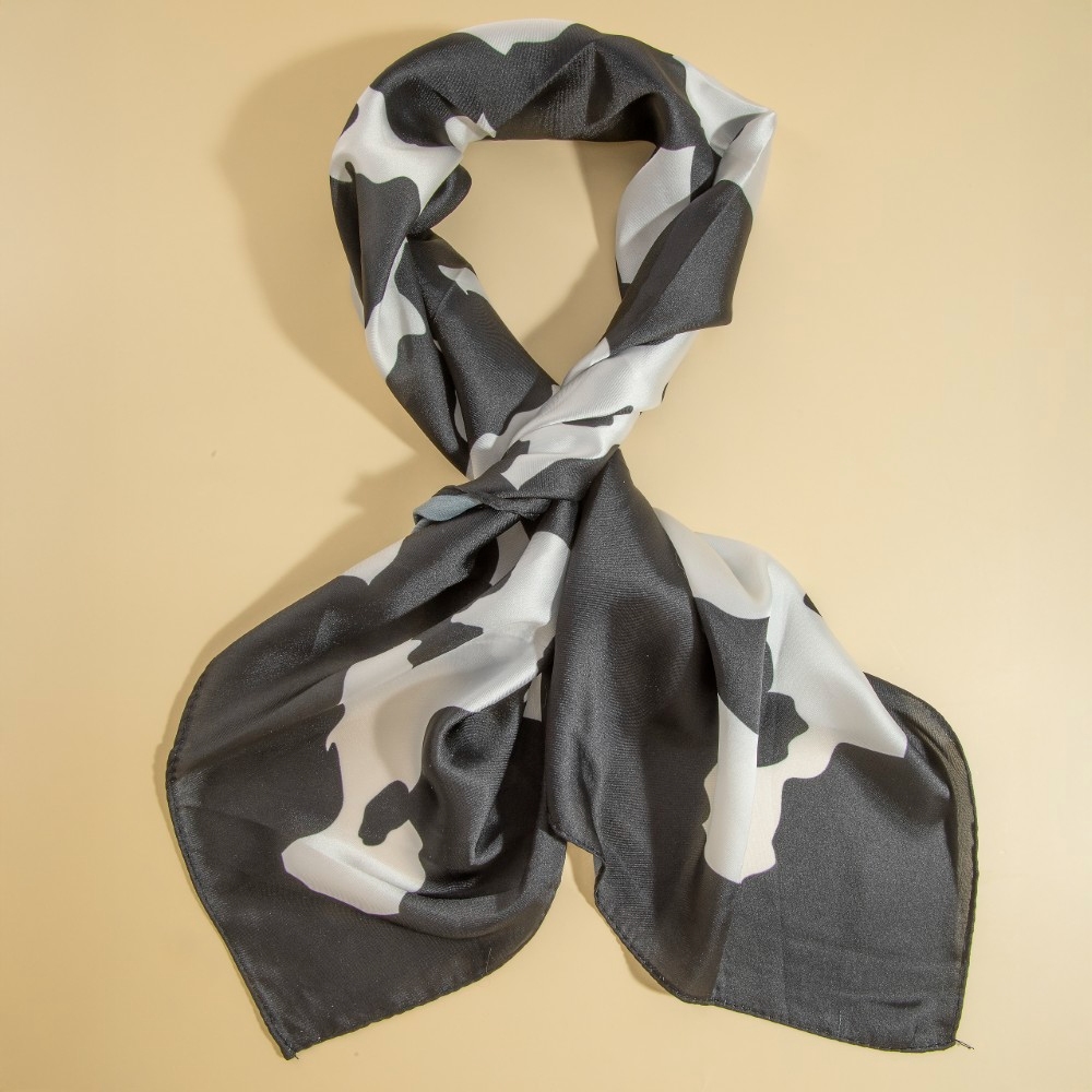 • Perfectly polished and endlessly versatile, this scarf features a distinct black cow print square bandana design. Perfect for adding a pop of color or texture to any outfit, this scarf is a must-have. Available in BK. This item is sold in packs of 1.