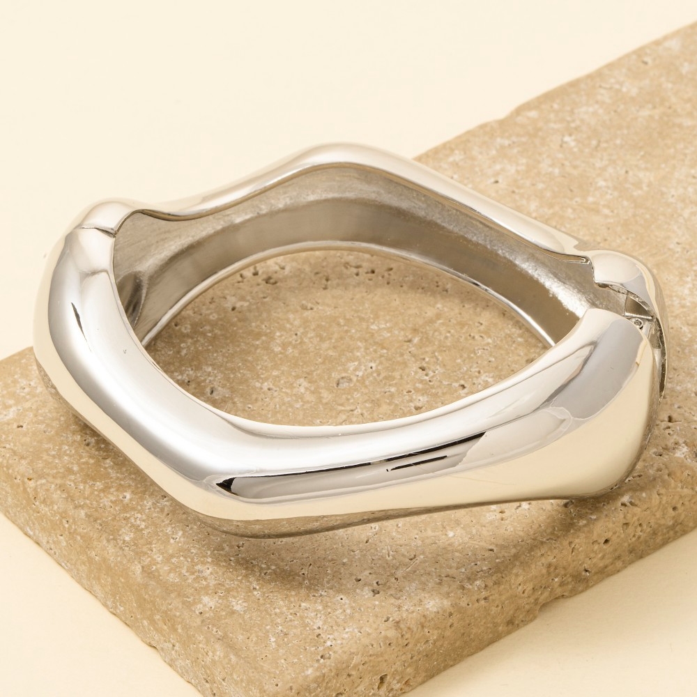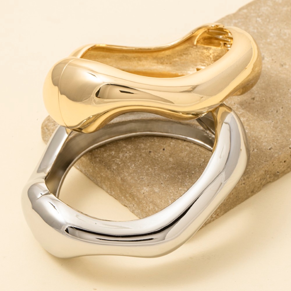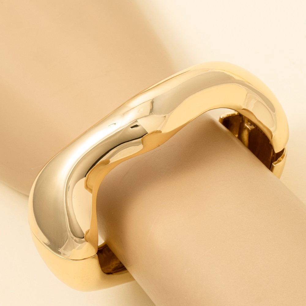 • A unique and stylish piece that sets you apart, this bangle bracelet offers a remarkable abstract wavy hinge design. Experience the transformative power of this versatile bangle bracelet, effortlessly enhancing the overall aesthetic of your outfit. Available in G, S. This item is sold in packs of 1.