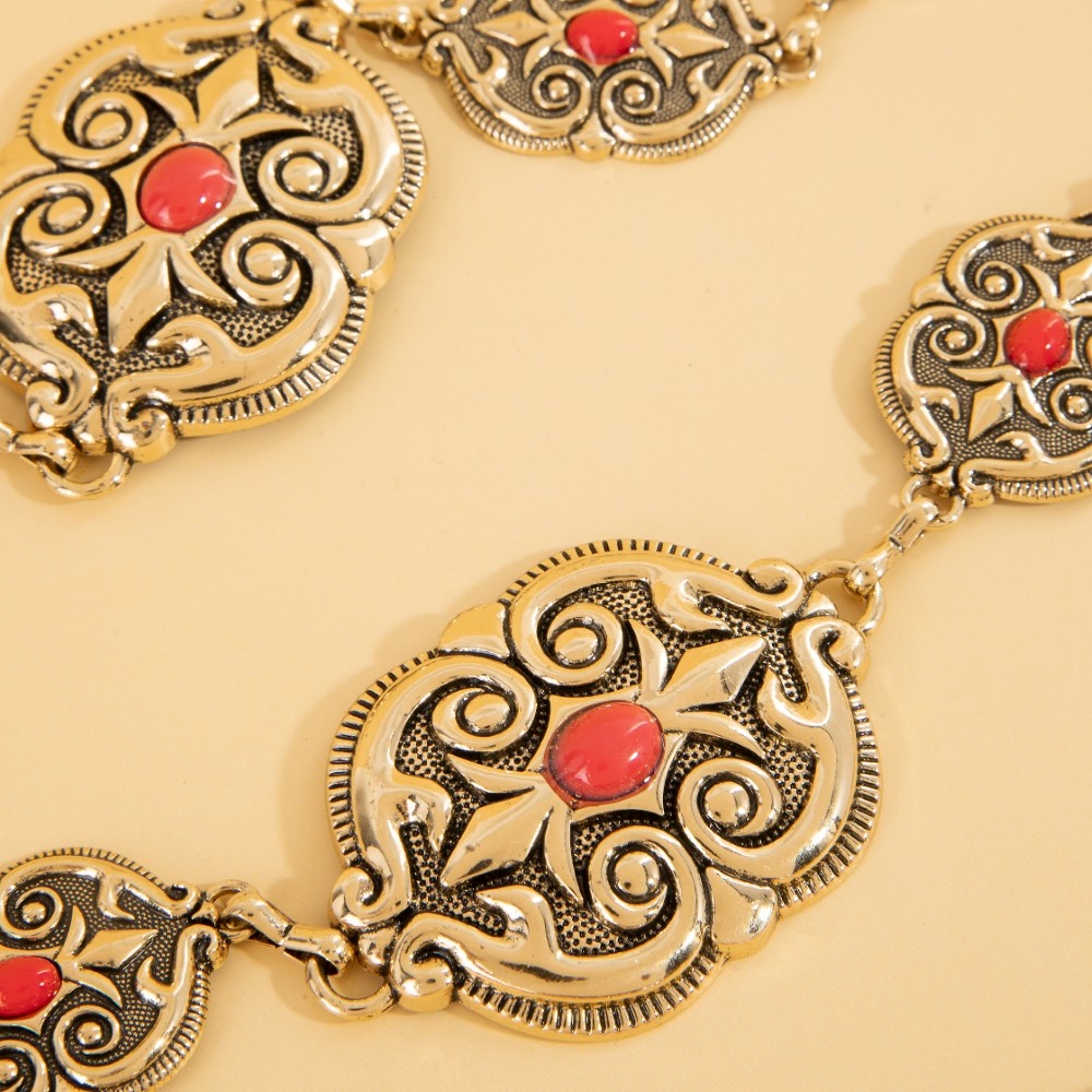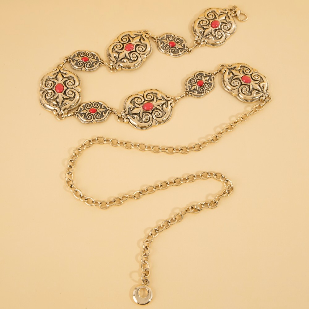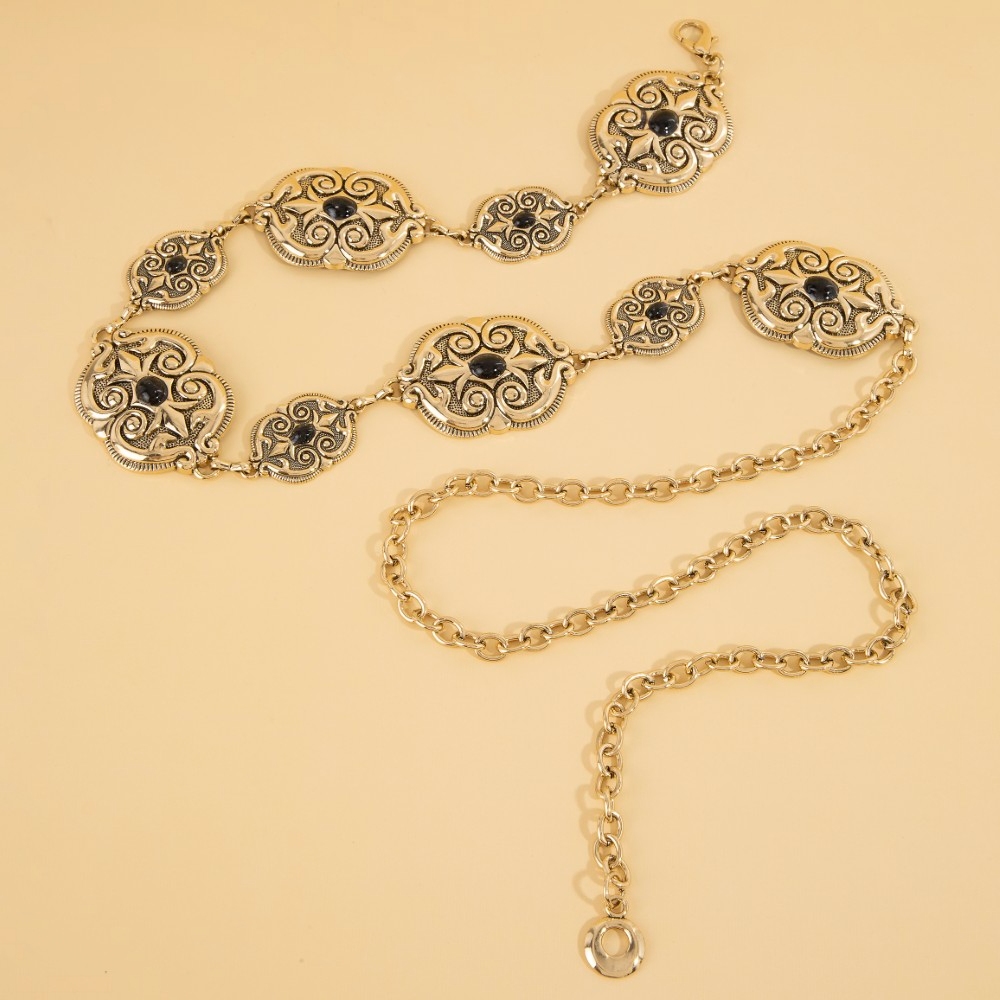 • Effortlessly stylish and always on-trend, this chain belt shows off a distinctive ornate western concho design. This versatile chain belt adds a touch of elegance to any outfit. Available in GBK, GRD, SBL. This item is sold in packs of 1.
