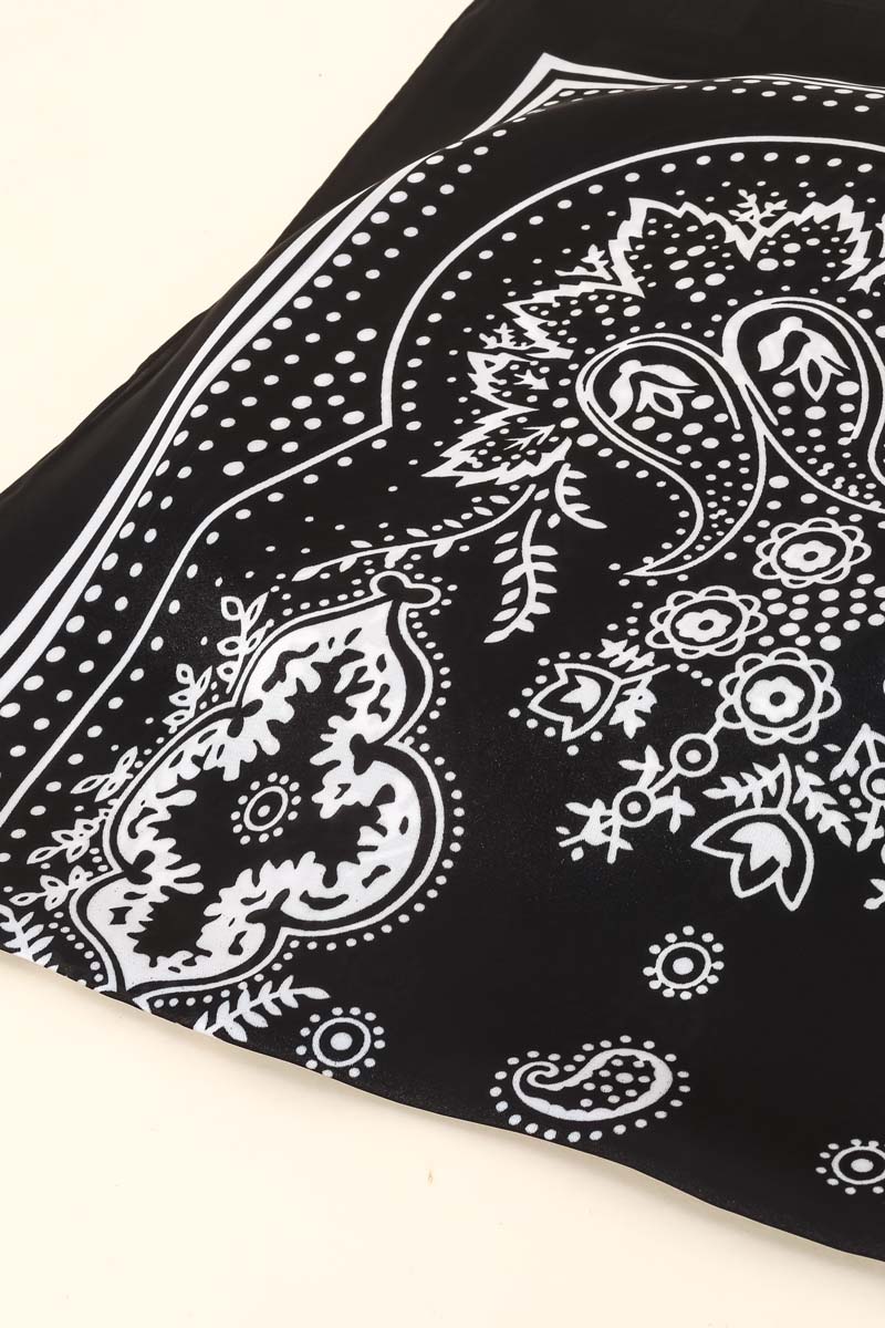 • The perfect way to add some sparkle to your outfit, this scarf exudes a refined light paisley design square design. Add some personality to your outfit with this stylish scarf. This item is sold in packs of 1.