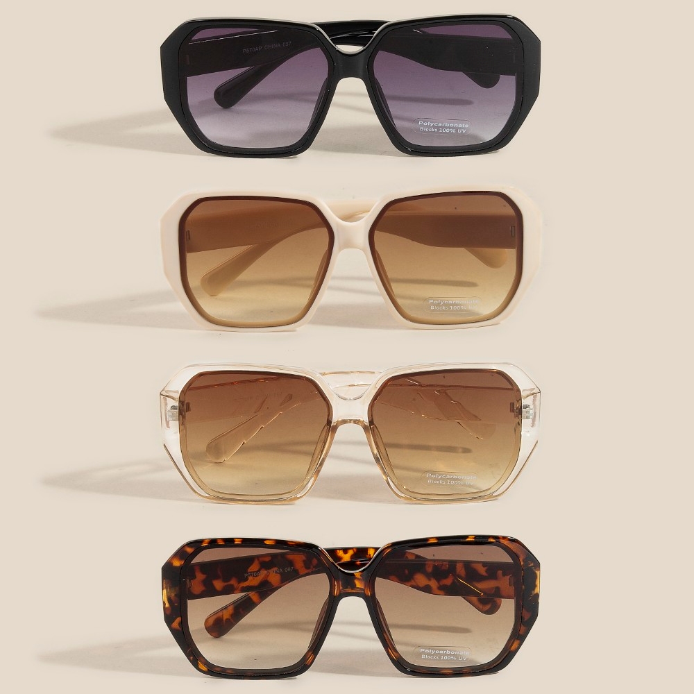 • Perfect for any occasion, from casual to formal, this set of sunglasses radiates a sleek oversized square lens sunglasses set design. Embrace fashion flexibility with this versatile set of sunglasses, designed to effortlessly enhance the sophistication of any outfit. Available in ASSORTED. This item is sold in packs of 12.