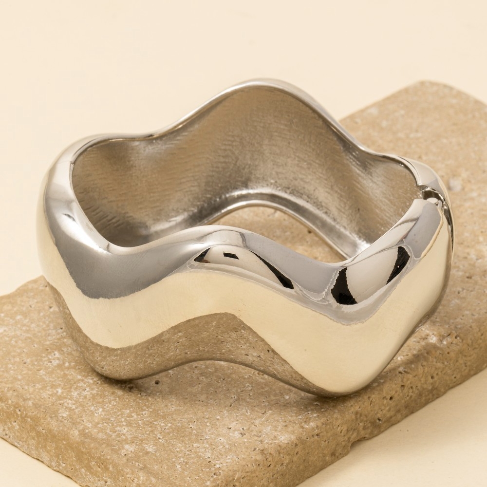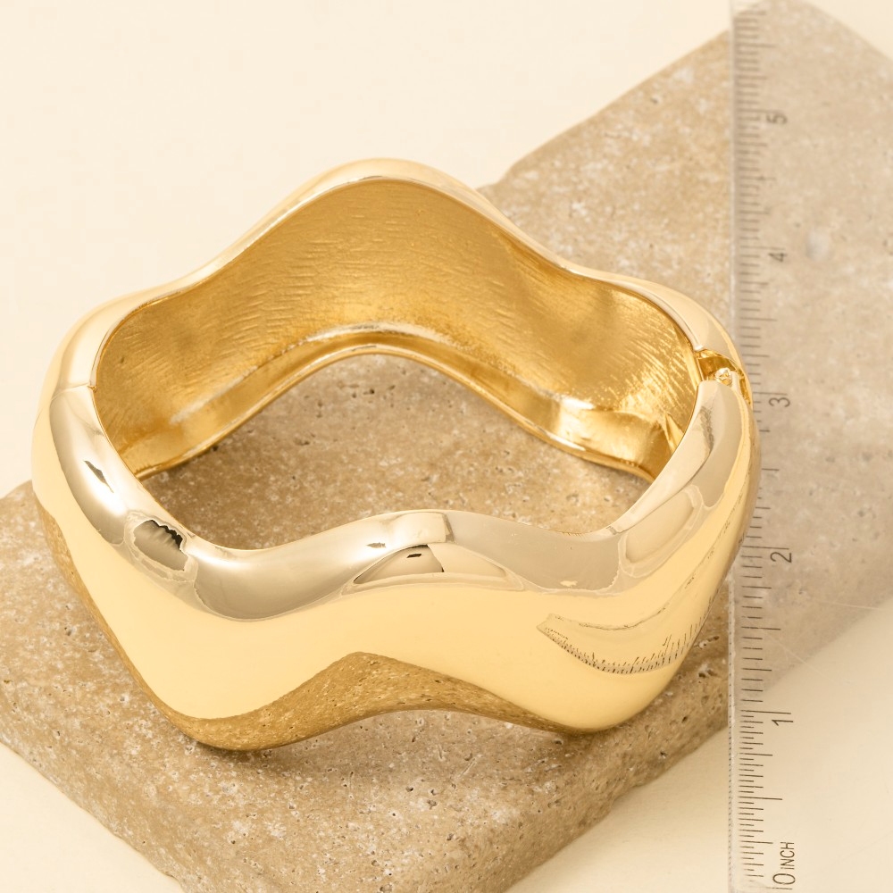 • A modern classic, this bangle bracelet boasts a magnificent simple wavy hinge design. Redefine your fashion identity with this versatile bangle bracelet, a timeless piece that complements any wardrobe. Available in G. This item is sold in packs of 1.