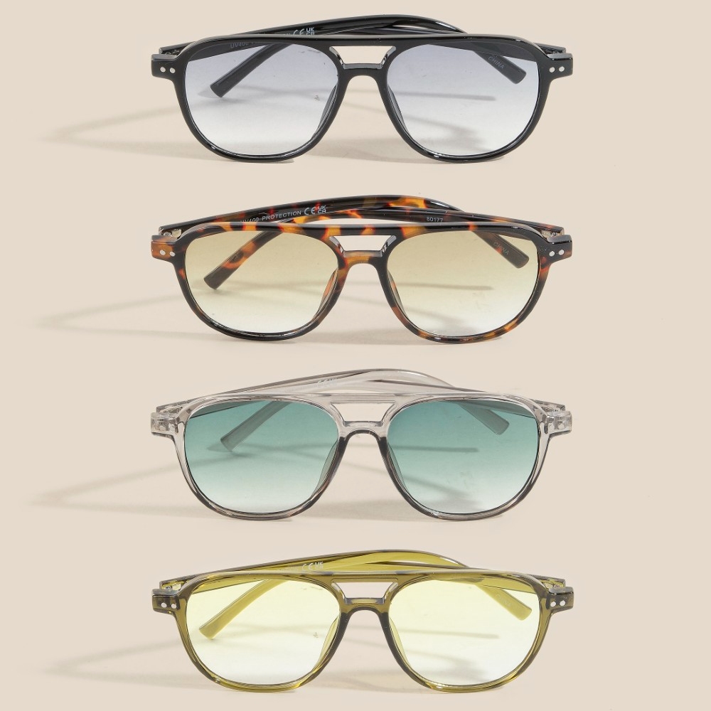 • Guaranteed to add a touch of glamour to any outfit, this set of sunglasses reveals an intricate resin aviator frame sunglasses set design. Perfect for adding a pop of color or texture to any outfit, this set of sunglasses is a must-have. Available in NO COLOR. This item is sold in packs of 12.