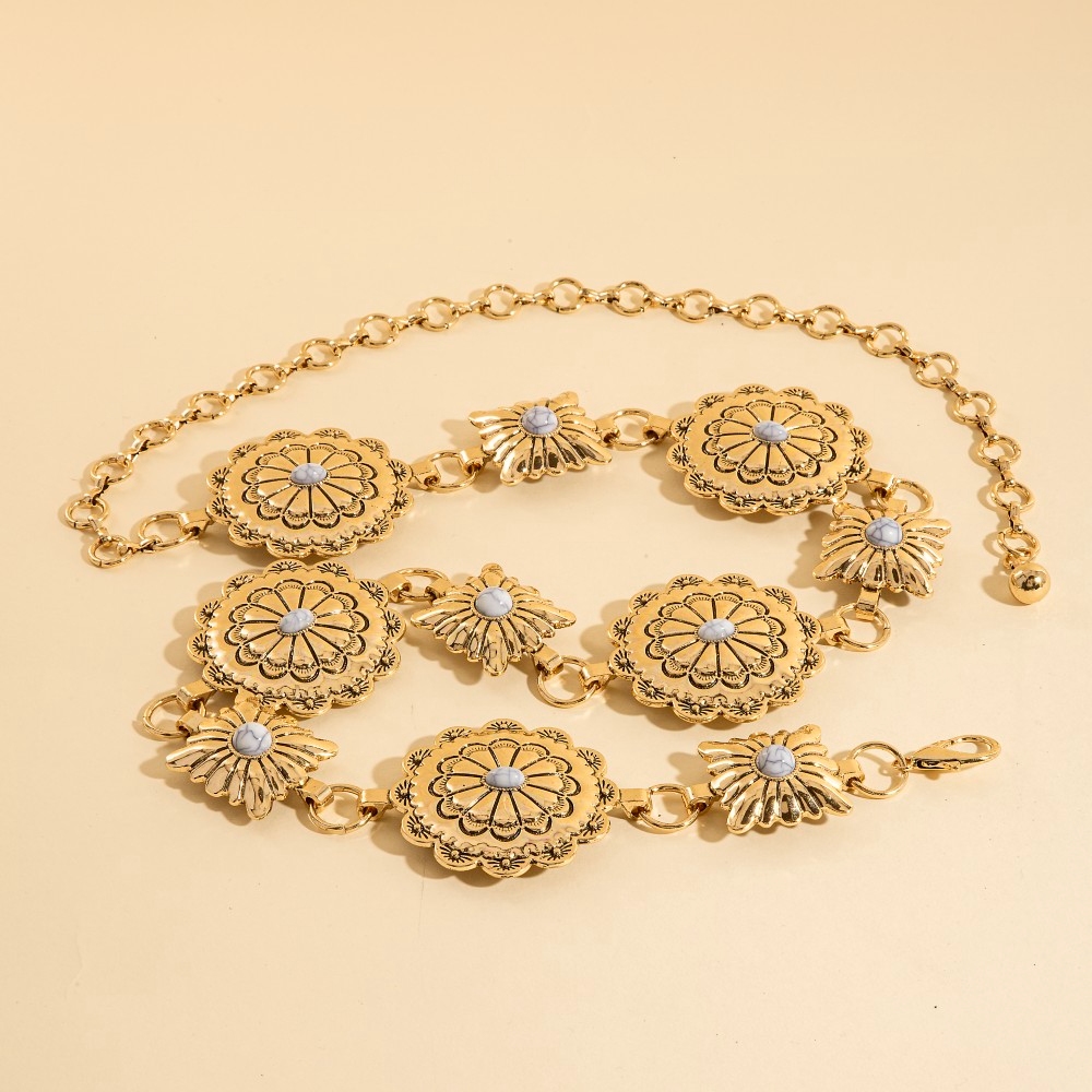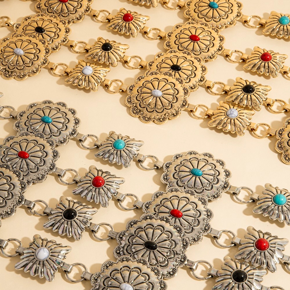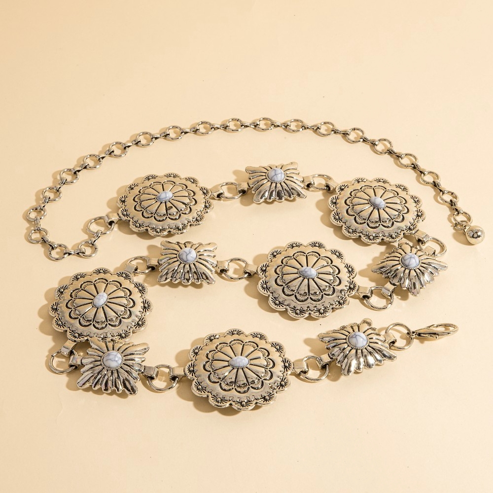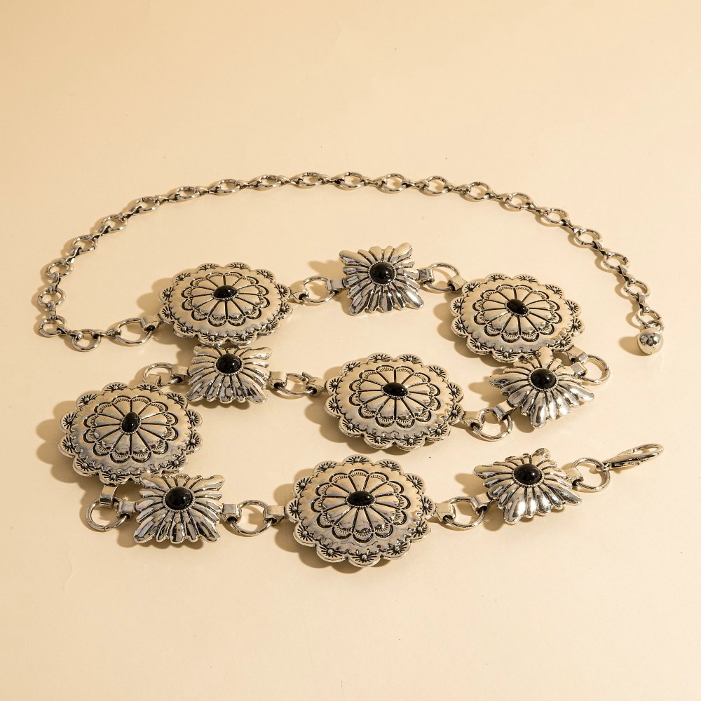 • Elevate any look, this chain belt shows off a distinctive western round concho disc design. Make a lasting impression with this versatile chain belt, a subtle yet impactful addition to your fashion repertoire. This item is sold in packs of 1.