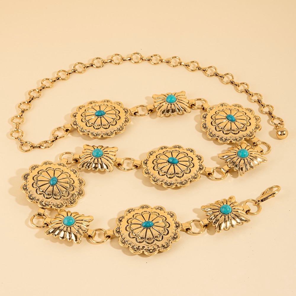 Ornate Western Turquoise Cluster Square Concho Chain Belt