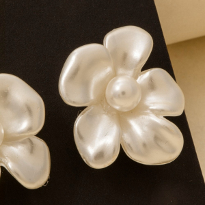 Acrylic Pearly Flower And Bead Stud Earrings