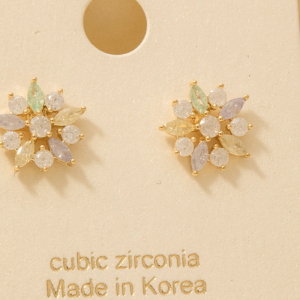Gold Dipped Cz Flower Stud Earrings