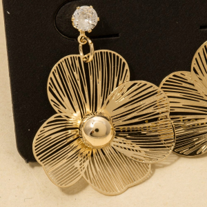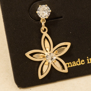 Cz Stud Golden Flower Drop Earrings