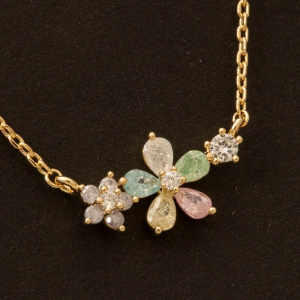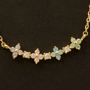Gold Dipped Cz Multi Flower Charm Necklace