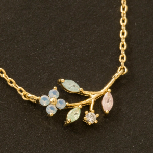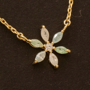 Gold Dipped Cz Flower Leaf Charm Necklace