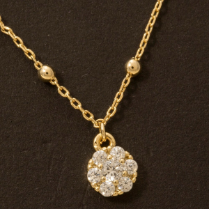 Cz Studded Flower Disc Pendant Necklace