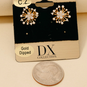 Gold Dipped Cz Pearl Flower Stud Earrings