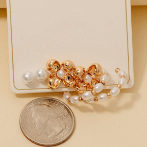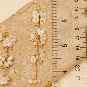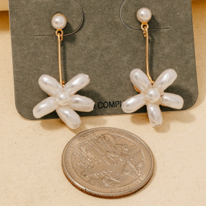 Pearl Beaded Flower Charm Bar Dangle Earrings