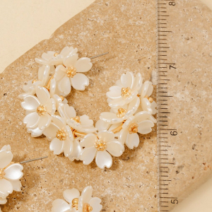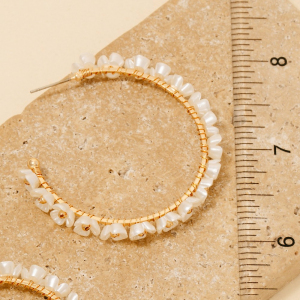 Pearl Beads Flower Stud And Hoop Earrings Set