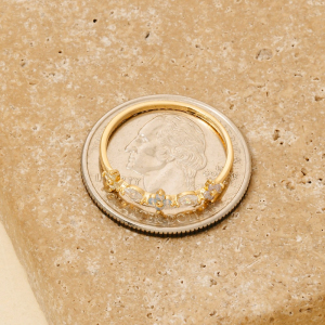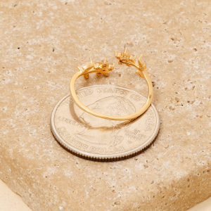 Gold Dipped Cz Flower Bow Ribbon Ring