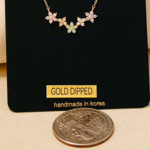 Gold Dipped Multi Cz Flowers Pendant Necklace