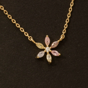 Gold Dipped Mixed Cz Flowers Chain Necklace